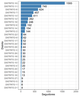 Seguidores en Twitter a candidaturas convencionales por distrito (En miles)