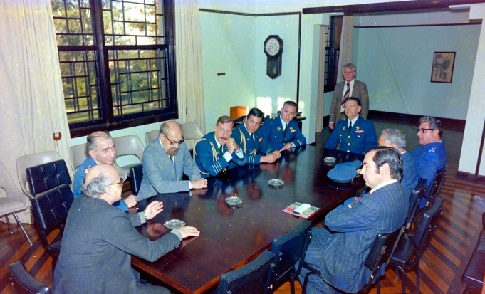 Sin embargo, fotos y documentos recientemente puestos a disposición por el Centro de Memoria Butantan sugieren lo contrario: durante la dictadura cívico-militar, el instituto tuvo estrechas conexiones con militares extranjeros, incluida la junta militar que gobernó Chile durante 17 años. Dos docenas de fotos obtenidas por Pública muestran incluso una visita a Butantan, el 1 de junio de 1979, del comandante en jefe de la Fuerza Aérea de Chile, Fernando Matthei, miembro de la Junta y ex ministro de Salud, junto con el cónsul general chileno en São Paulo.