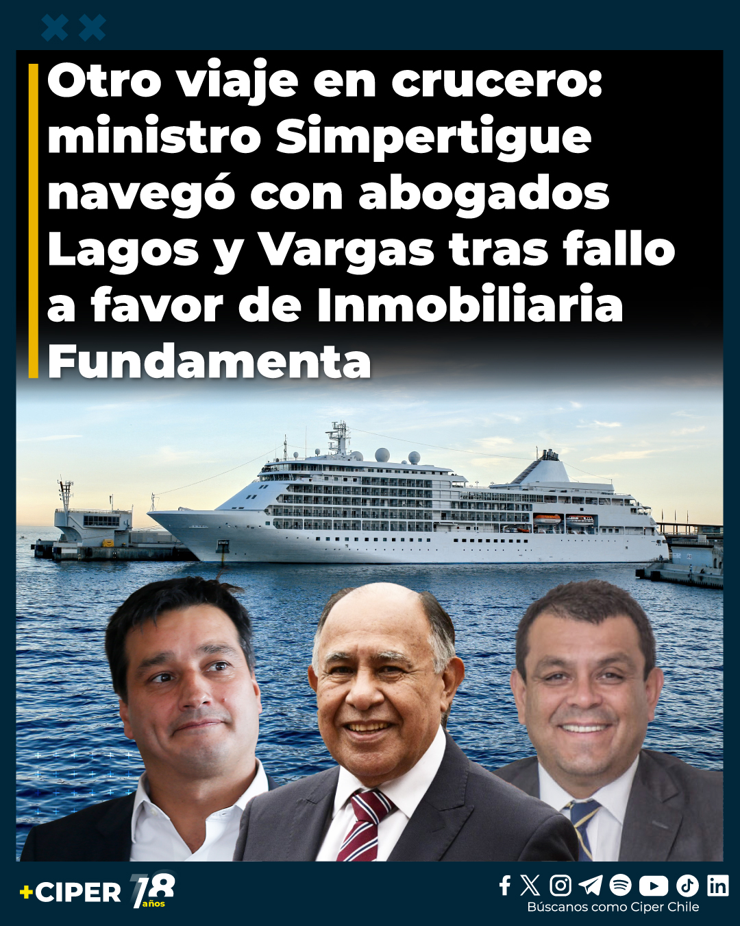 CIPER pudo confirmar que en abril de 2023, el ministro de la Corte Suprema Diego Simpertigue y los abogados del consorcio CBM, Eduardo Lagos y Mario Vargas, compartieron un viaje en crucero por el Mediterráneo.