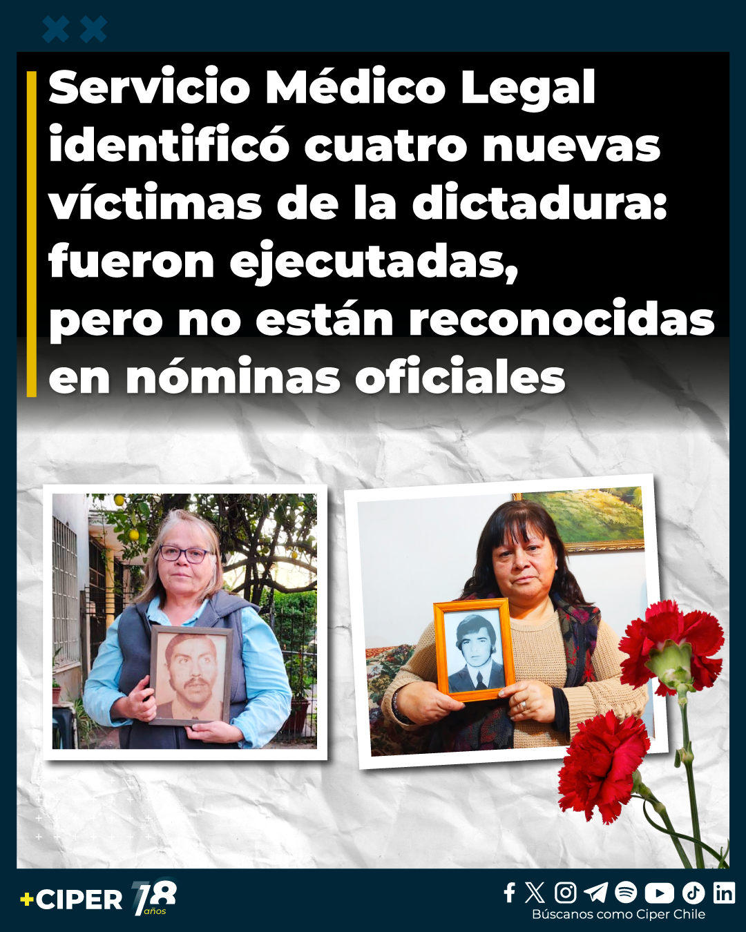 El caso de Bernarda Vera, quien habría sido encontrada en Argentina, aunque figuraba como detenida desaparecida, ha despertado una ola de negacionismo sobre los crímenes de la dictadura cívico-militar. Lo que se desconoce es que mientras Vera podría salir de la nómina oficial de ejecutados y desaparecidos, otros casos hasta ahora no reconocidos podrían ingresar próximamente a ese listado. José González, Ricardo San Martín, Óscar Vivanco y Ricardo de la Jara son ejemplos: los cuatro desaparecieron entre septiembre y octubre de 1973, fueron fusilados y sus cuerpos sepultados sin dejar registro en el Cementerio General. Ninguno tenía militancia. El Servicio Médico Legal los identificó entre 2017 y 2024. Sus casos –por ahora– no forman parte de las nóminas oficiales de víctimas. Estas son sus historias.