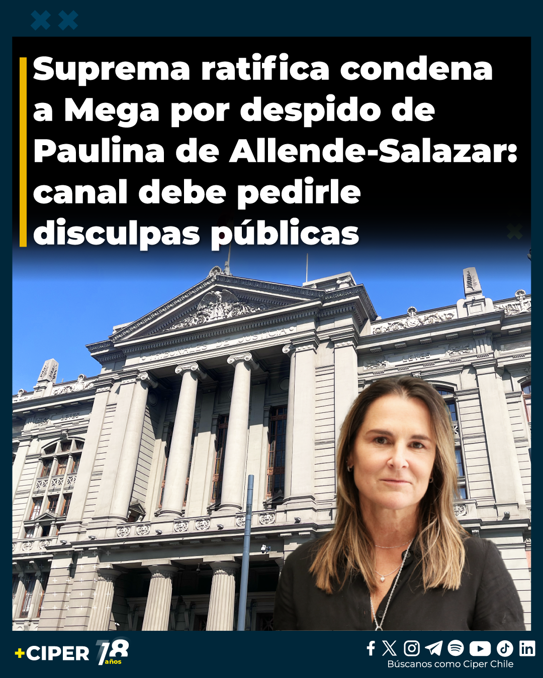 La Corte Suprema ratificó el anterior fallo de la corte de Santiago que obliga a Mega a pedirle disculpas públicas a Paulina de Allende-Salazar por el despido que sufrió el 6 de abril de 2023.